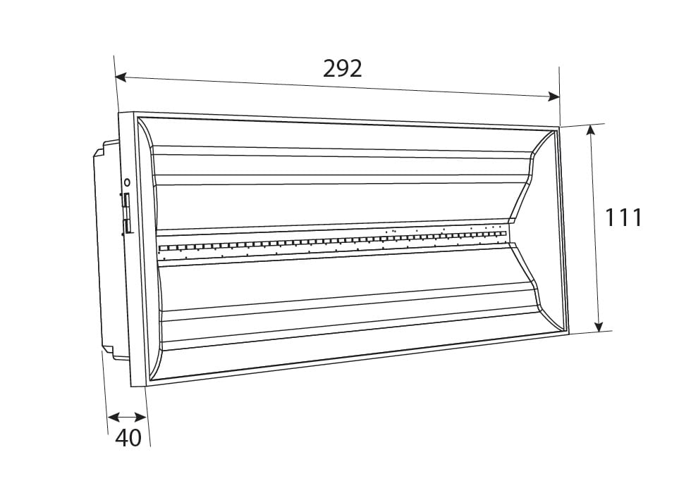 Apparecchio di illuminazione di emergenza a LED per sistemi centralizzati Eaton modello NexiLite, codice NEXI500-230, lampada per sistemi centralizzati con flusso luminoso 500lm. Lampada di emergenza con ottica simmetrica avente grado di protezione IP40, resistenza agli urti IK03, alimentazione 110/240Vac 50/60Hz 180/240Vcc, certificazione ENEC, dimensioni 290x110x40mm. Accessori per l'installazione (opzionali non inclusi): in superficie con cornice NEXI-FR, in superficie con grado IP65 tramite kit NEXI-IP, incasso murale con NEXI-RB, su controsoffitto con kit NEXI-FC. L'apparecchio di emergenza può essere utilizzato per la segnalazione delle vie di esodo tramite kit opzionali monofacciali NEXI-PICTO o bifacciali NEXI-PLEX.
