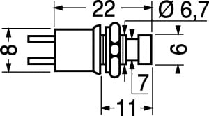 PULSANTI MINIATURA CON AUTORITORNO. PORTATA:3 A - 28 Vcc. CORPO:materiale fenolico. TERM.:a saldare in ottone. Col. Puls.: Rosso.