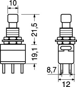 DEVIATORE BIPOLARE A PULSANTE ALTERNATO. PORTATA:4 A – 28 VCC. CONTATTI:ottone nichelato. PULSANTE:acciaio nichel. TERMINALI:a saldare. VITA ELETTR.:20.000 cicli.