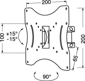 Supporto da muro per TV LED/LCD/Plasma, con uno snodo ruotabile in orizzontale di 20° e inclinabile in verticale di ±15°. Di facile montaggio per TV standard VESA 50-75-100-200. • Per TV LCD da 15"a 30"• Distanza dal muro: 6,5cm • Peso massimo sopportabile: 25kg • Peso del supporto: 1,1 kg