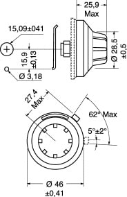 MANOPOLA ANALOGICA Ø 46mm, Risoluzione centesimale. •N°ROTAZ.MAX: 15 giri •TEMP.LAVORO: -55°÷+71°C •CORPO: cromo satinato •IMPUGNAT.: plastica nera