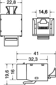 PRESA MODULARE KEYSTONE COMPLETAMENTE SCHERMATA CATEGORIA 5 ENHANCED TIPO 110. CORPO:ABS UL 94V0. SUPP. CONT.:PBT UL 94V0. caricato vetro 15%. CONTATTI:bronzo fosforoso. SEZ. CAVI:da 22 a 26 AWG. FINITURA:Au 50µ su Ni 40µ. TEMP. LAV.:-40°C÷+80°C. PORTATA MAX.:1,5 A. TENS. DI PROVA:150Vac. PER PLACCHE:40/17000. PER SPINE:40/21400- 40/21500. INSERITORE: 40/ 6500.