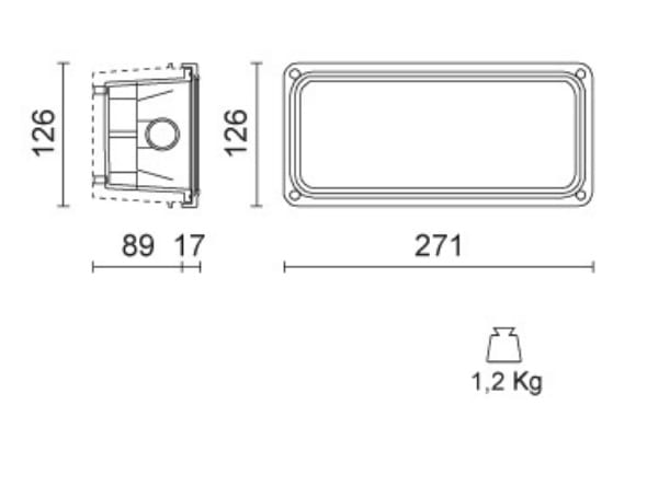 Tipologia di prodotto : Incassi per esterni. Tipologie di montaggio : Incasso da parete. Descrizione : Controcassa in dotazione nell'apparecchio. Descrizione della lampada : HE 60W E27. Potenza (W) : 40. Numero di lampade : 1. Corpo : Termoplastico ad alta resistenza F.V. 30%. Riflettore : Alluminio. Schermo di Chiusura : Temprato e satinato. Viteria : Acciaio inox. Orientamento : Fisso. Distribuzione della luce : Simmetrica. Emissione : Diretta. Colore: Bianco.