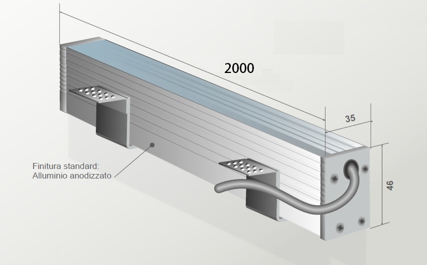 KIT PROLINE 3546. Applicazioni: Illuminazione generale e architettonica. Sostituzione illuminazione lampade fluorescenti. Retroilluminazione. Profilo a plafone con effetto di luce continuo ed omogeneo dato dal posizionamento interno della strip LED. Possibilità di giunzione piana a 90° per effettuare linee di luce continue. Profilo in alluminio anodizzato. Profilo completo di diffusore opale testate di chiusura. Lunghezza barre disponibile fino 2m. Finitura: Bianco.