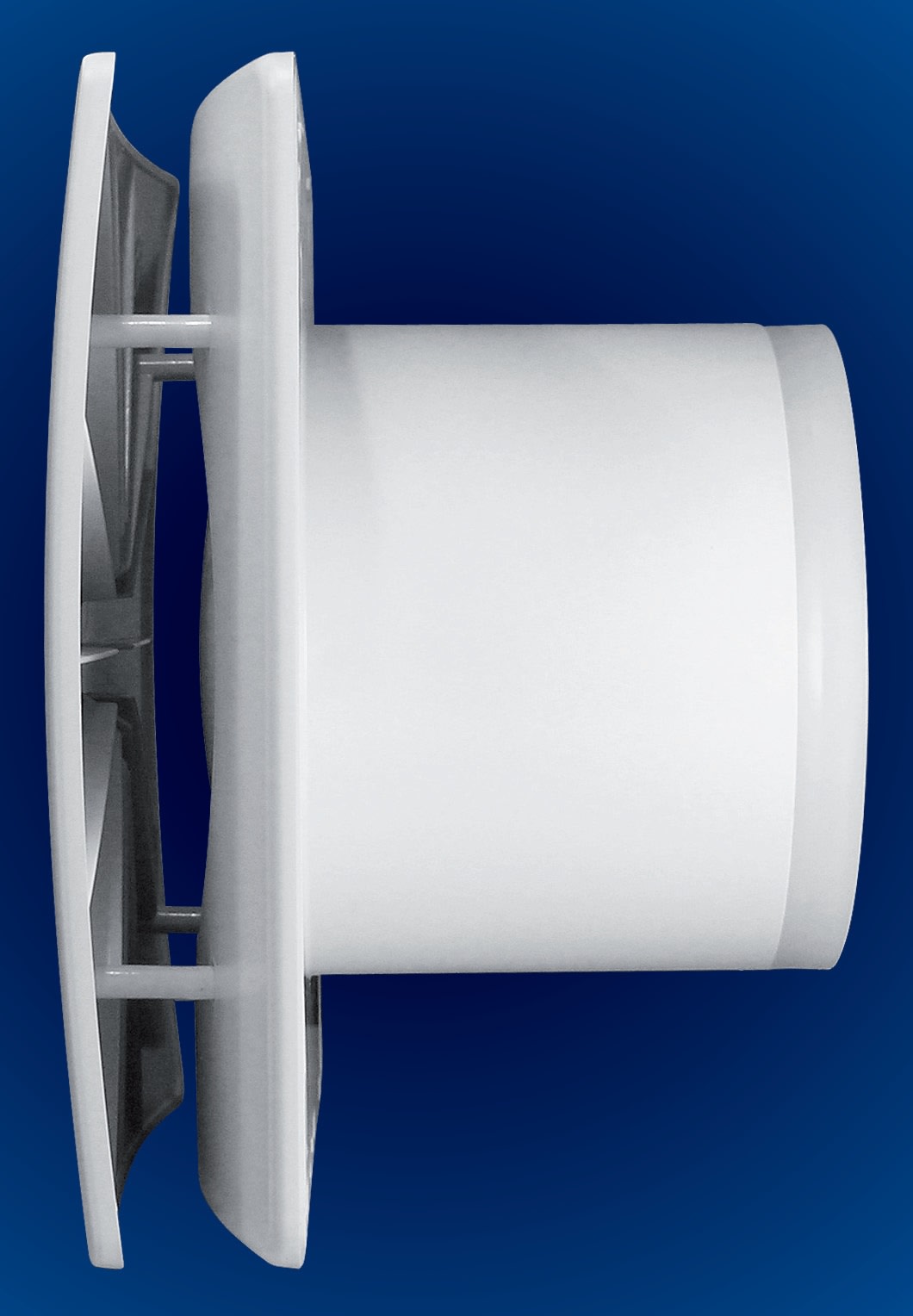 Aspiratore elicoidale dal frontale design. Aspirazione laterale su tutto il perimetro Adatto per espulsione diretta all'esterno o in brevi condotti.Versione con aumento/riduzione della velocità del motore in funzione del tasso di Umidità relativa rilevato (regolabile da 40 a 90%)
