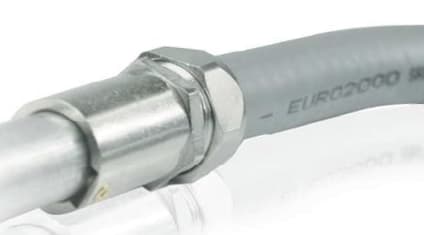 Raccordo ad innesto rapido per il collegamento di un tubo rigido con un tubo flessibile. Garantisce un grado di protezione IP67 a una temperatura di esercizio da -25°C a 150°C. Continuità elettrica rilevata < 0,05 ohm/mt