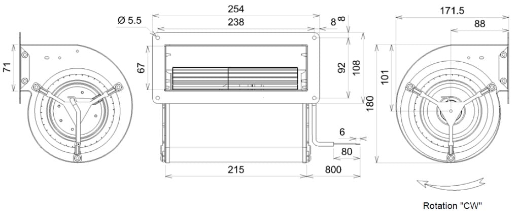 Ventilatore centrifugo a doppia aspirazione con coclea e flangia