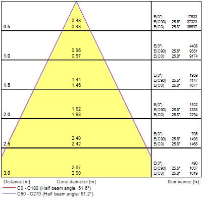 Flusso luminoso calcolato secondo la norma IEC 62722-2-1:
