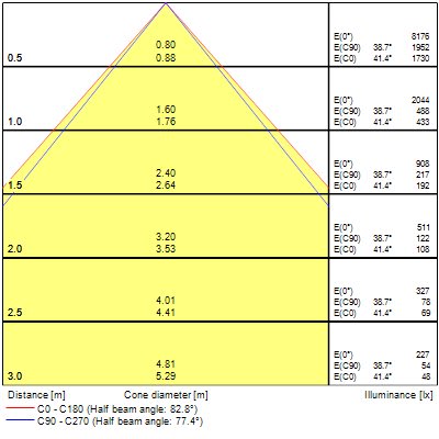 Flusso luminoso calcolato secondo la norma IEC 62722-2-1: