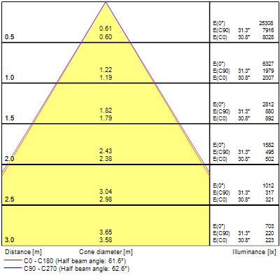 Flusso luminoso calcolato secondo la norma IEC 62722-2-1: