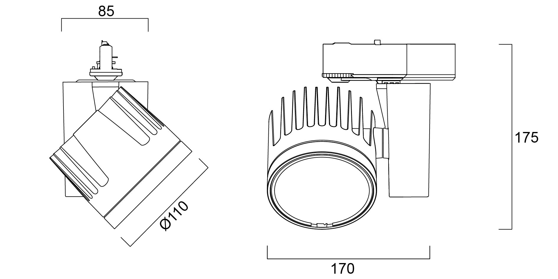 PROIETTORE DA BINARIO LED BEACON WALLWASHER LED DALI 3000K 3823 LUMEN 48W CRI93 NERO IP20 IK02