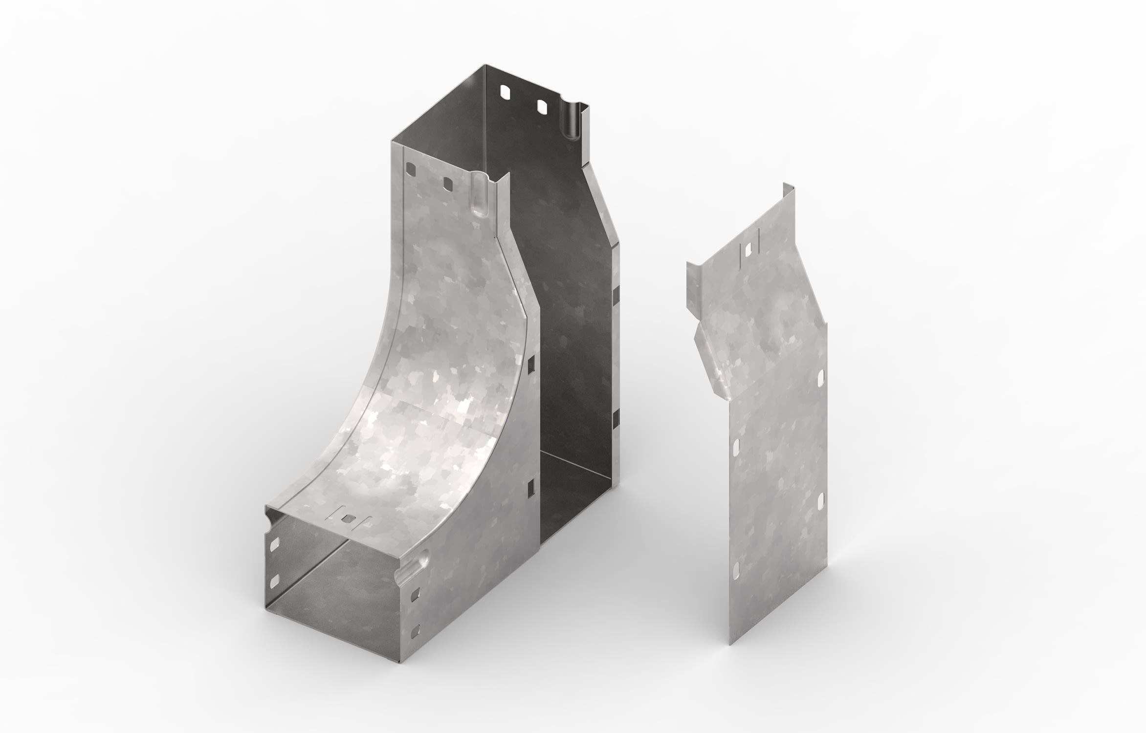 Articolo della serie FEMI3 costituito da curva sghemba 90° sx vs. alto, in acciaio al carbonio con rivestimento anticorrosivo di zincatura a caldo, applicato per immersione dopo lavorazione in bagno di zinco fuso a circa 450°C, raffreddato in aria o in acqua. Si raccomanda per installazioni esterne, rurali, industriali o interne con ambiente aggressivo.
