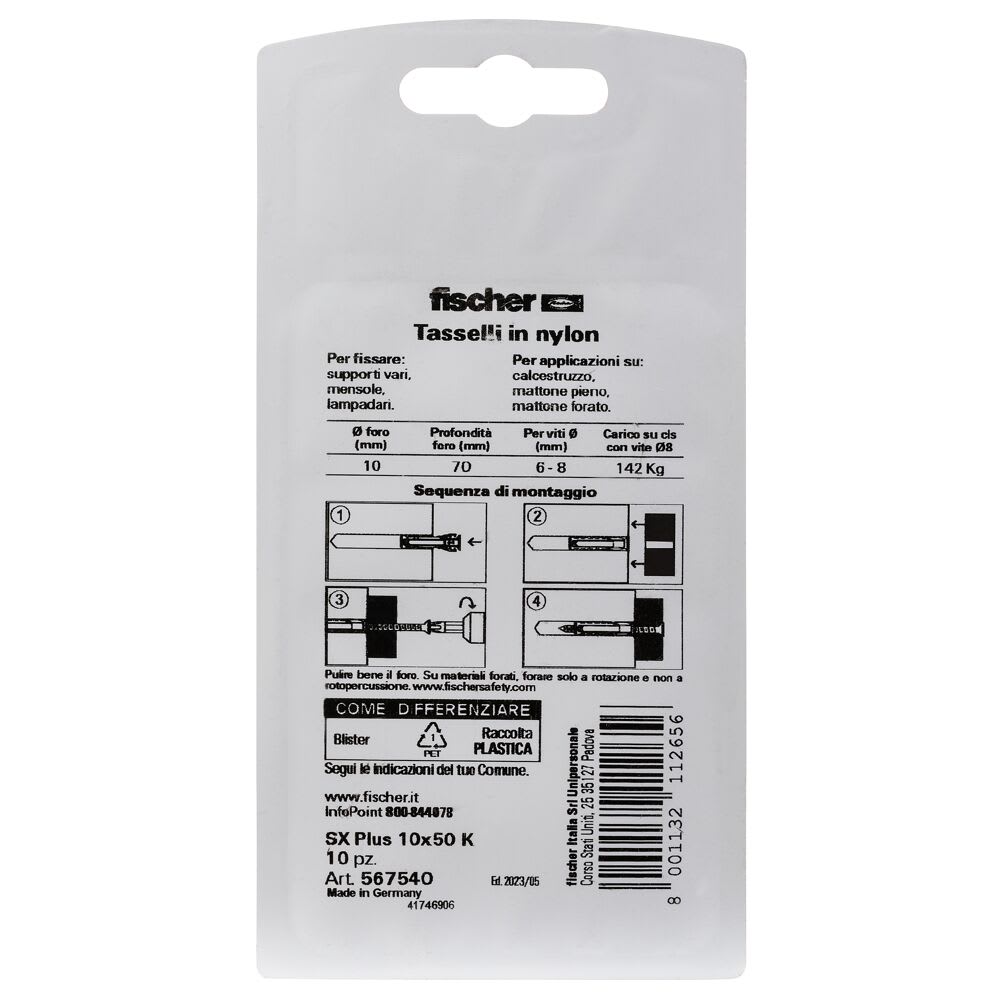 FISCHER ITALIA - FIS00567540 SX PLUS 10X50 K TASSELLO - 00567540