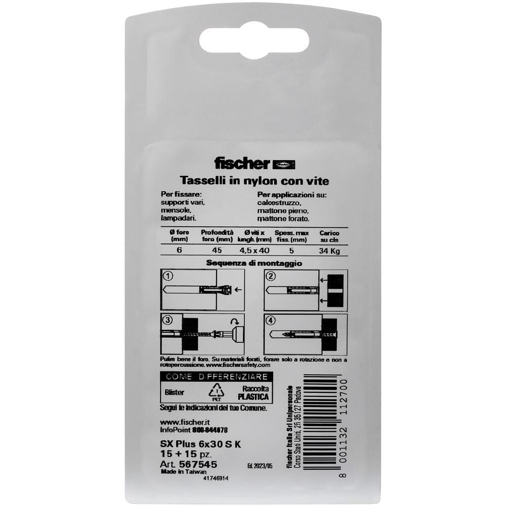 FISCHER ITALIA - FIS00567545 SX PLUS 6X30 S K TASSELLO/VITE - 00567545
