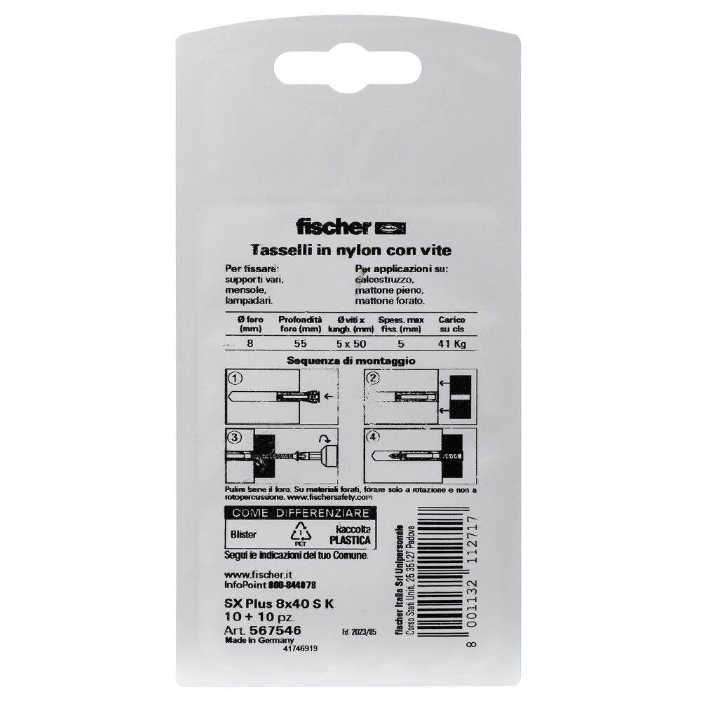 FISCHER ITALIA - FIS00567546 SX PLUS 8X40 S K TASSELLO/VITE - 00567546