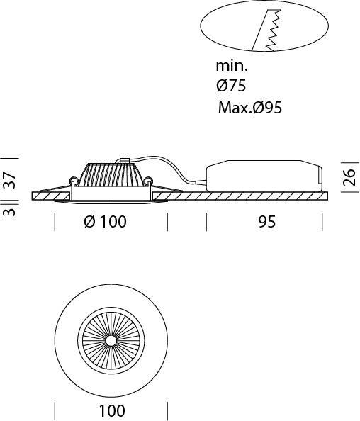 Dimmerabile tramite potenziometro (integrato nell'apparecchio):