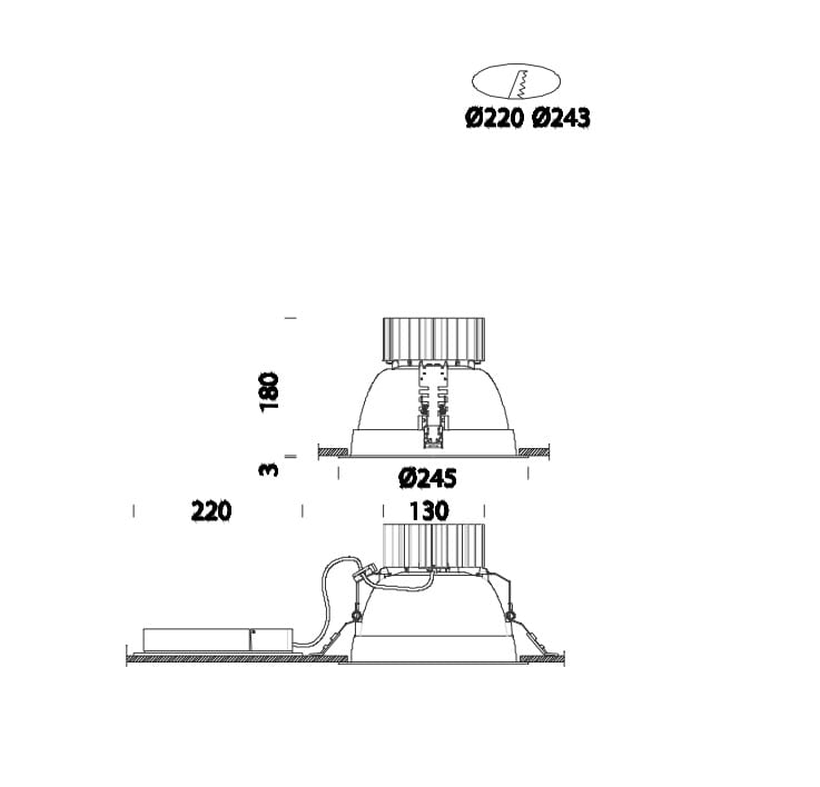 • Diametro incorporato - 220...243 mm