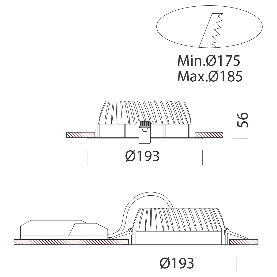 D (per montaggio in impianti industriali con pericolo di incendio per polvere o fibre EN 60598-2-24):