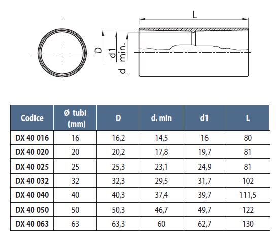 Per diametro del tubo nominale: