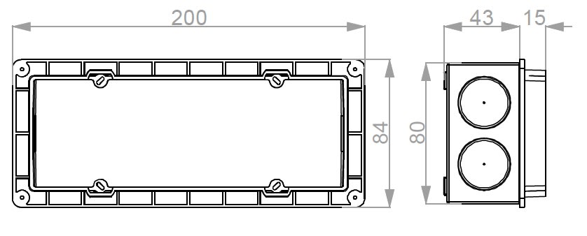 Controcassa da incasso a muro in tecnopolimero completa di coperchio antisfondamento da calcestruzzo. Materiale: polipropilene a iniezione, passacavo a pressione OL20056, Viti inox 3.5 x 16. Incassabile sia in gettate di calcestruzzo che in muri di mattoni. Adatta a ricevere tubi corrugati diam.25mm max