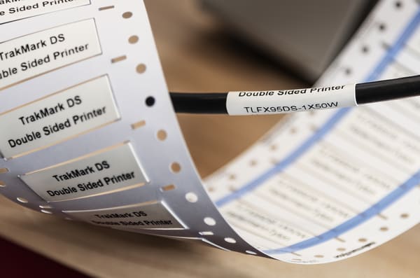 Rapporto di restringimento 2:1. Zero alogeni. Bassa propagazione, densità e tossicità dei fumi. Pretranciati a 50 mm, 25 mm e 16 mm come standard, altre lunghezze disponibili su richiesta. Disponibile in bianco e giallo. Per diametri di cavo da 38,1 mm a1,2 mm. Consegna in comode scatole per lo stoccaggio. Il TLFX DS è un materiale termorestringente zero alogeni approvato per l'industria ferroviaria europea con rapporto di restringimento 2:1, fornito pretagliato e disposto in un comodo formato a scaletta Ladder Style. Le speciali caratteristiche del materiale mostrano una bassa propagazione, densità e tossicità dei fumi. Il formato prespezzonato non solo permette la stampa su entrambi i lati del marcacavo, ma permette anche all'utente di scegliere e prelevare con facilità il marcacavo desiderato. La guaina viene preparata in modo da permettere una stampa eccellente grazie alle stampanti HellermannTyton.