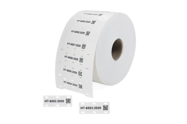 Targhetta limited fire hazard. Zero alogeni. Per cavi di grandi dimensioni o fasci di cavi. Stampabile a trasferimento termico o a incisione laser. Elevata flessibilità e resistenza meccanica. Fornita in bobine in comodi imballi. Le TAGLF sono delle TIPTAG sviluppate per l'utilizzo in applicazioni legate al trasporto di massa. Il materiale è in poliolefina reticolata zero alogeni a bassa propagazione della fiamma, bassa tossicità e densità dei fumi. Queste targhette vengono fissate sui cavi tramite fascette e sono quindi adatte anche a lavori di retrofit. Il materiale viene condizionato per essere stampato sia a trasferimento termico che con incisione laser. Vengono fornite in un pratico formato a scaletta da cui prelevare le singole targhette per l'applicazione tramite fascette. Da stampare con la gamma premium di stampanti a trasferimento termico e ribbon HellermannTyton.