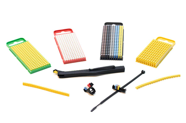 Marcatore a scatto in nylon prestampato veloce e facile da usare . Ideale dove la terminazione è completata o per manutenzione e riparazione. I marcatori si bloccano insieme per garantire un perfetto allineamento del testo. Marcatori resistenti alle vibrazioni, i marcatori WIC si agganciano saldamente a fili e cavi. Lo strumento WIC contiene 20 marcatori WIC in tutte e quattro le misure. Il sistema di presa blocca i marcatori sul filo e resiste alla rotazione. Le più diffuse marcature a 2 cifre come L1, L2, L3, PE sono disponibili in giallo o con codice colore. Il colore del dispenser indica la dimensione del marcatore: WIC0 (verde), WIC1 (rosso), WIC2 (nero), WIC3 (giallo). Sono disponibili due accessori per identificare i cavi da 6 mm² a 25 mm² (WICA-AC10-25) e fino a 95 mm² (WIC-ACT-BK).. I segnafili WIC possono essere applicati manualmente o con l'ergonomico utensile applicatore WIC tool. Basta semplicemente inserire la striscia di segnafili all'interno dell'utensile applicatore, premere il segnafilisul cavo, girare ed applicare il successivo. Una volta applicati tutti i segnafili farli scorrere uno vicino all'altro per agganciarli tra loro. I marcacavi per la fibra devono essere applicati a mano. I due accessori WICA (pag. 496) sono ideali per identificare cavi con diametri maggiori (6mm²-95mm²)