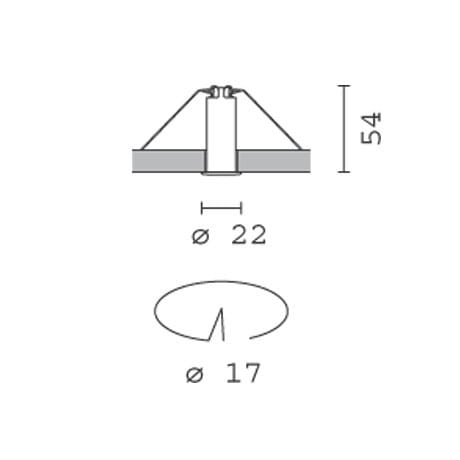 Mini-incasso rotondo fisso con cornice di battuta. Posizione arretrata del LED per minimizzare l'abbagliamento diretto. Corpodell'incasso in alluminio tornito, anello interno in materiale termoplastico disponibile in diverse finiture verniciate o metallizzate. Lenteottica ad alta risoluzione in PMMA ­ spot (16°). LED 2700K ad elevato indice di resa cromatica. L'assemblaggio non richiedeutensili. Unità di alimentazione disponibile con codifica separata. Ad incasso sul controsoffitto tramite molle in filo di acciaio ­spessore minimo del controsoffitto 1 mm ­ foro di preparazione Ø 17 mm. Dimensioni (mm): ø22x54. Colore: Bianco / Nero (47). LED1,4W 115lm - valori della sorgente luminosa / 1,4W 66lm - valori di sistema i. Efficienza luminosa (valore di sistema): 46lm/W. Warm 2700K CRI 90. Ottica: S - Spot 14°. Orientabilità: Fisso. Materiale: alluminio e materiale termoplastico.