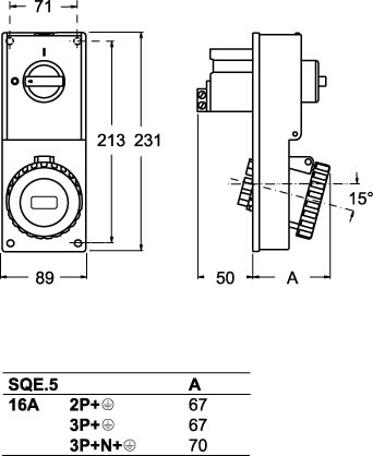 Prese con interruttore di blocco senza portafusibili da quadro. • Conformi alle norme CEI EN 60309-1, -2 e -4 • Custodie e frutti in materiale isolante termoplastico autoestinguente grigio RAL 7035 • Manopola di comando interruttore lucchettabile • Blocco meccanico che impedisce: la chiusura dell'interruttore a spina estratta, l'estrazione della spina ad interruttore chiuso, lo smontaggio della presa dal quadro o dalla cassetta a spina inserita • Resistenza meccanica agli urti: 6 J • Numero poli: 3+T