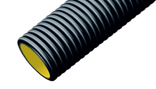 Tubo corrugato esternamente e liscio internamente denominato CAVIDOTTO A DOPPIO STRATO (Licenziatario del marchio IMQ). • Mescola di polietilene neutro alta densità, masterbatch colorante additivato con anti-UV per resistenza di 1 anno a 130 KLangley. • Colore grigio parete esterna, giallo parete interna. • Impiego per la protezione cavi elettrici B.T. (bassa tensione) e telefonici interrati. • Limiti d'impiego: - per ambienti con una temperatura compresa tra i -10 e i 40°C. - Propagante la fiamma. • Raggio di curvatura minimo: 8 volte il ØN. • Resistenza allo schiacciamento (EN 50086-2-4 / CEI 23-46 / Variante A1) ≥750 N con deformazione diametro interno pari al 5 % (campioni da 200 mm). • Accessori: -Manicotti di giunzione in polietilene alta densità acorredo. -Guarnizioni elastomeriche per la tenuta a richiesta. • Installazione sotterranea in trincea. • IMBALLO: BARRE DA 6 METRI. TOLLERANZA SULLA LUNGHEZZA ±1%