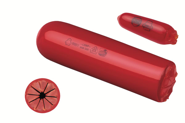 Idonei all’isolamento provvisorio dell’estremità di cavi unipolari BT in tensione.\nMateriale resina termoplastica flessibile in accordo alla norma VDE0680 colore rosso.\nIndicato anche per la protezione di cavi con capicorda. Apertura sagomata per una miglior tenuta ed aderenza sul cavo.