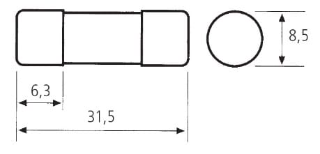 Corpo in steatite adatto a sopportare sbalzi termici molto elevati, riempito di sabbia di quarzo. L’elemento di fusione è composto da una lamina di rame ricoperta in argento. La doppia capsula ricoperta d’argento evita l’ossidazione e mantiene le caratteristiche immutate nel tempo. Tutti i fusibili cilindrici sono progettati per ridurre al minimo la potenza dissipata il cui valore è indicato sul corpo del fusibile stesso. Grandezza: CH8.