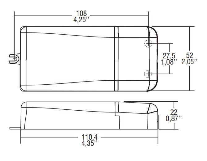 Alimentatori elettronici dimmerabili (IGBT-TRIAC) in corrente continua 21W 16-42Vout 500mA. Alimentatore indipendente IP20, per uso interno Protetto in classe II contro le scosse elettriche per contatti diretti e indiretti. PFC attivo. Corrente regolata ±8 % incluse variazioni di temperatura. Fornito di coprimorsetto e serracavo. Morsetti di entrata e uscita sullo stesso lato (sezione cavo fino a 1,5 mm2/ AWG15). Serracavo su primario e secondario per cavi di diametro: min. 3 mm - max. 8 mm. Fissaggio dell’alimentatore tramite asole per viti. Protezioni: termica e cortocircuito; contro le extra-tensioni di rete; contro i sovraccarichi. Protezione termica = C.5.a.