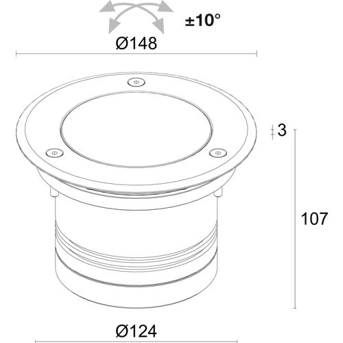 Incasso uplight da esterno; carrabile fino a 2000 kg; a incasso (pavimento); corpo in alluminio anodizzato lega EN AW 6082, ghiera in acciaio inox AISI 316L o alluminio anodizzato lega EN AW 6060 (solo Bright 5.8), schermo in vetro extrachiaro trasparente temprato, schermo in vetro extrachiaro temprato serigrafato (ottica diffusa); finiture: acciaio inox. 16W. 3000K. 63°. 1564 lm. Quadrato