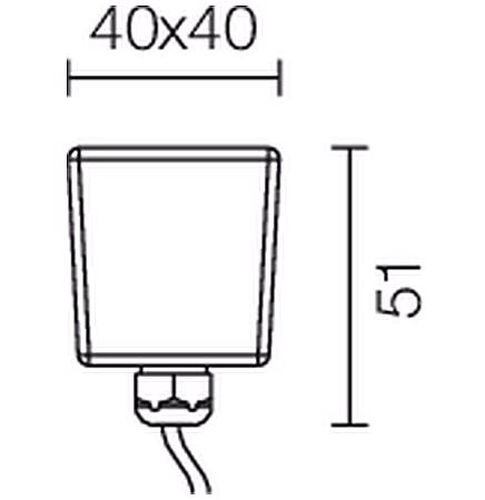 Apparecchio a incasso da esterno o interno; calpestabile; 1W - 220/350mA; 1 power LED; 3000K; CRI: 75÷85; luce diffusa; flusso totale: 37 lm (3000K a 220mA); corpo in alluminio anodizzato, schermo in vetro temprato opalino ad elevato spessore; finitura: vetro sabbiato opalino; temperatura di esercizio: -10°C +45°C; dotato di sistema IPS (utilizzare corrugato Ø20 min); grado di protezione contro i liquidi e i corpi solidi: IP67; Glow Wire Test: 960°; sicurezza fotobiologica: gruppo rischio 1 secondo EN62471:2006; montaggio con cassaforma WC0410; classe di isolamento III; peso 0,18kg; dimensioni 40x40x55mm; collegamento in serie con cavo 1,5m Ø6.2 H05RN-F 2x0,75; dimmerazione disponibile mediante alimentatore dimmerabile.