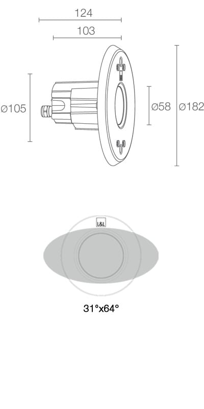 Incasso da immersione (non adatto per immersione in acqua salata, non adatto per applicazioni fuori dall’acqua); a incasso (parete), profondità max 10 m; corpo in tecnopolimero termoconduttivo, ghiera in acciaio inox AISI 316L; schermo in vetro extrachiaro temprato; finiture: acciaio inox microsabbiato. 9W. 359 lm. 3000 K. 62°.