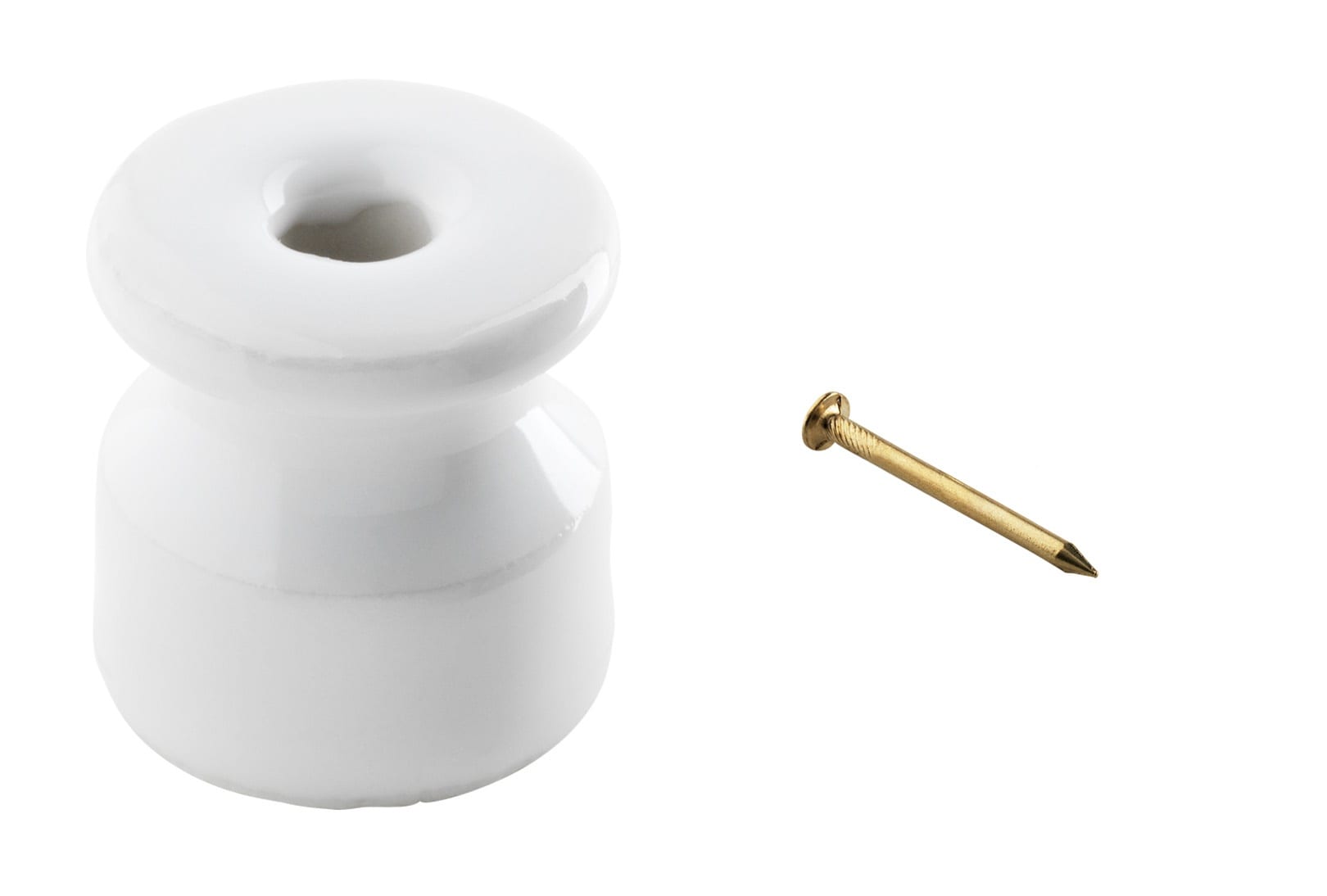 c'era una volta, vintage Isolatore maxi ELITE in porcellana bianca (ideale per treccia cotone 3G2,5mm2/4G1,5mm2) diametro 26 mm - H 33 mm - Con chiodo ottonato