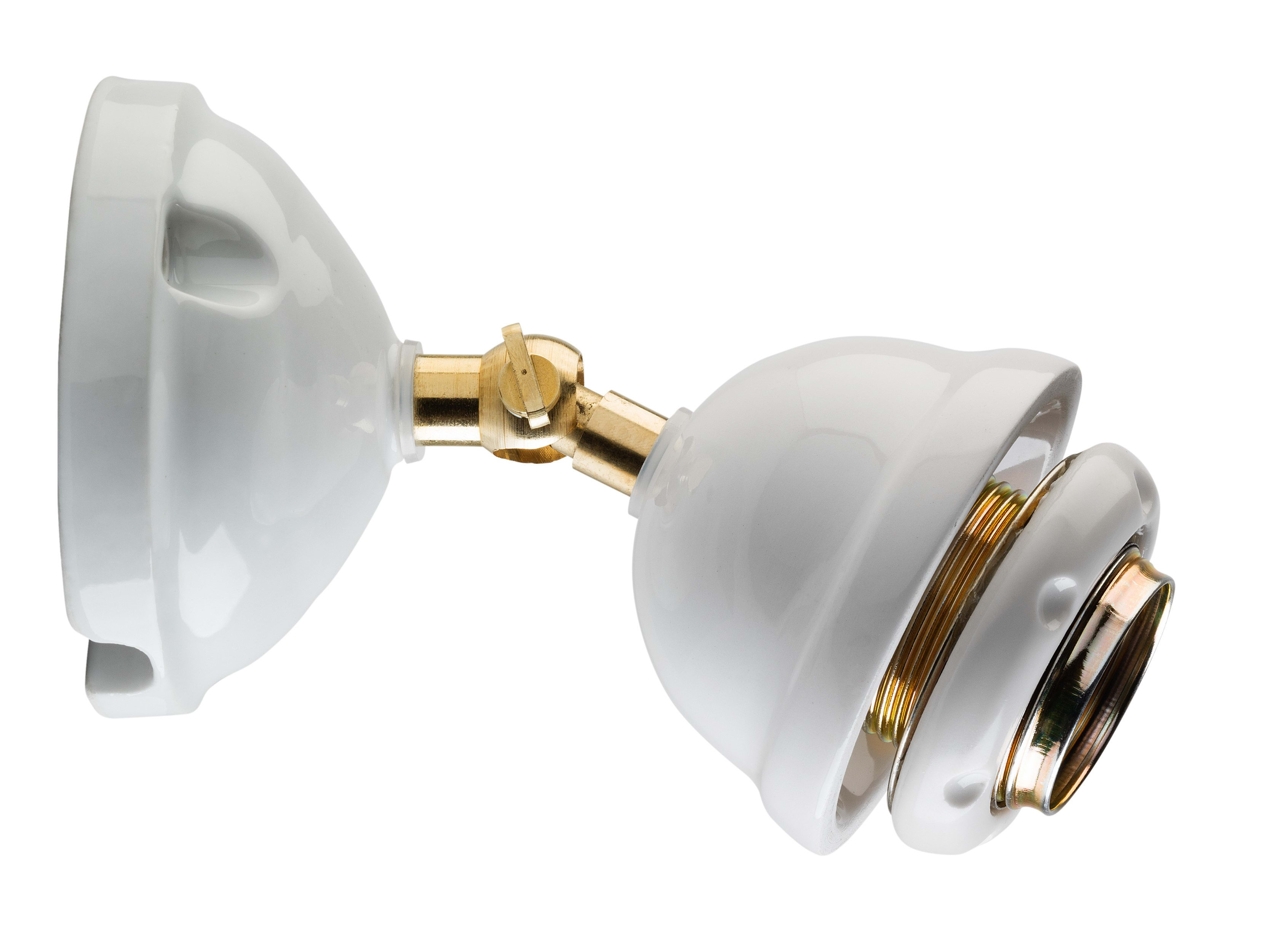 SERIE CLASSIC - IN PORCELLANA BIANCA Spot a parete con snodo - Attacco E27 - Potenza 60W - Grado di protezione IP 20 Snodo in metallo ottonato con chiave di fissaggio
