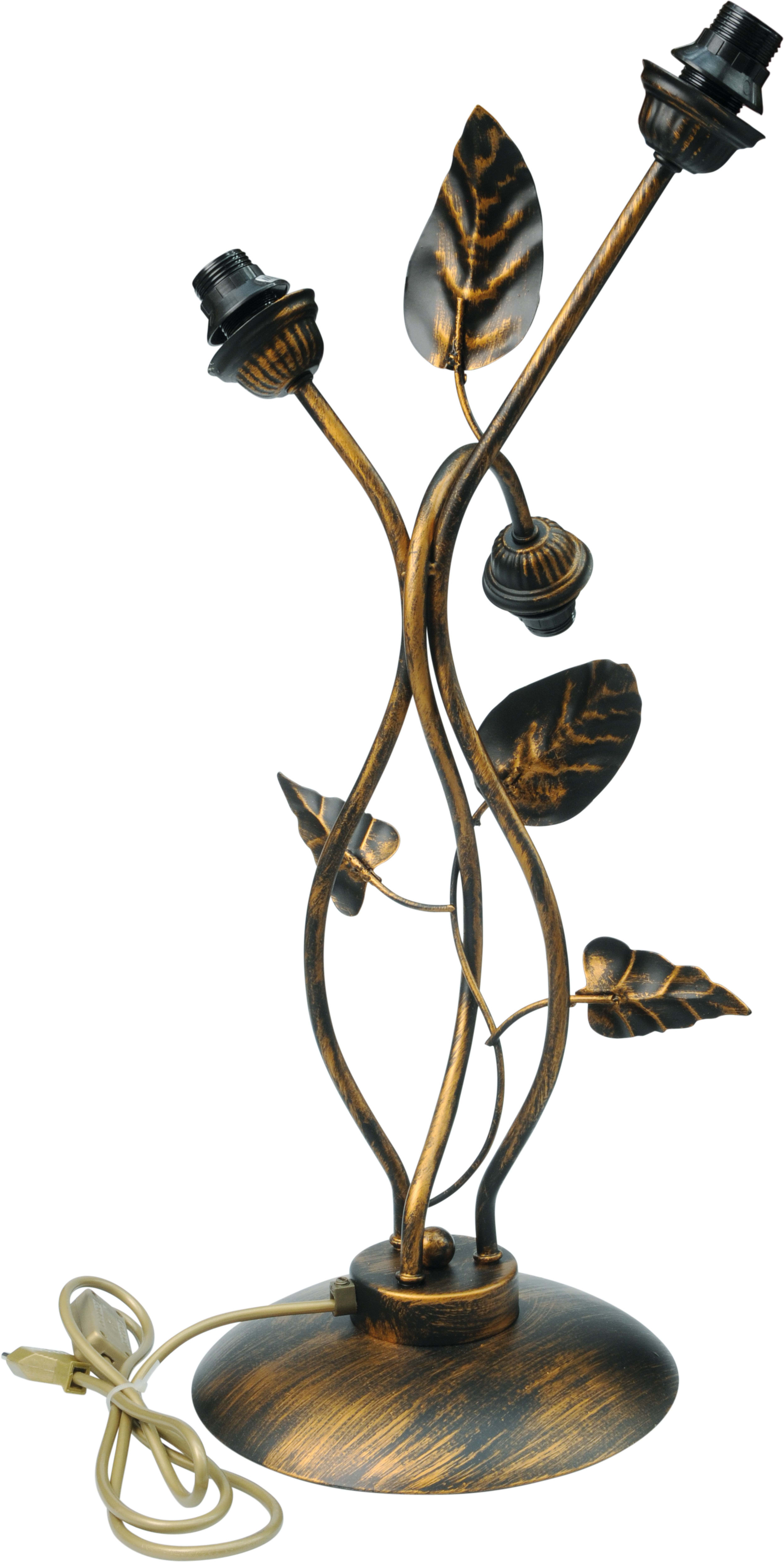 SERIE ORO DUCATO - LAMPADE DA TAVOLO Lampada da tavolo - Attacco E14 - Potenza 60 W - Spina 10A 250V ~ IMQ - Grado di protezione IP 20. A tre luci. In metallo brunito. Ghiera in materiale plastico. Cavo colore oro con interruttore passante.