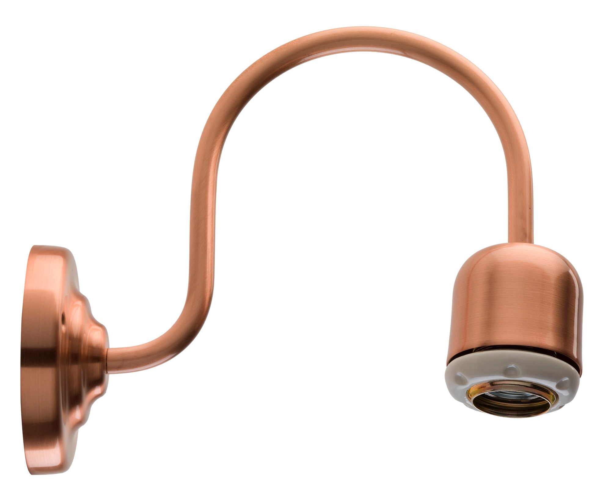 SERIE CLASSIC - APPLIQUE DA PARETE Applique da parete a 90? - Attacco E27 - Potenza 60 W - Grado di protezione IP 20. Ad una luce. In rame satinato. Ghiera in porcellana bianca.