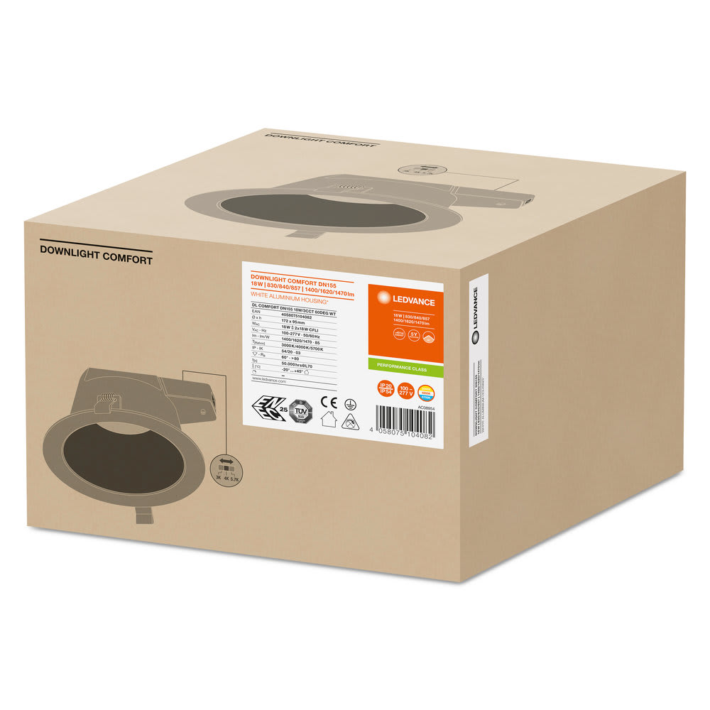 LEDVANCE - LDVDWLCOM18 DOWNLIGHT COMFORT 155 18 W 3CCT IP54 WT