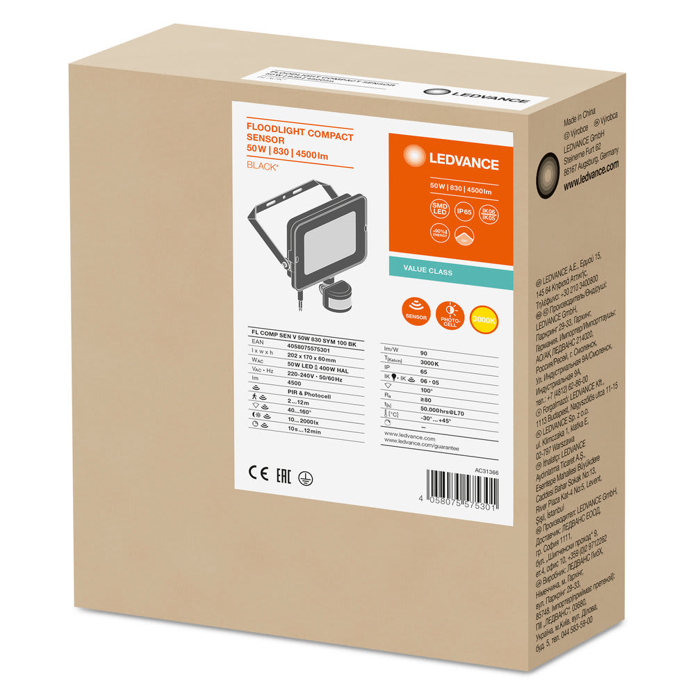 FLOODLIGHT COMPACT SENSOR 50W