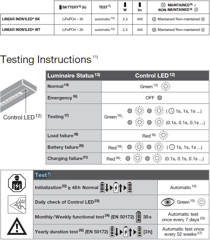 Apparecchio a sospensione per applicazioni in ufficio singole o in fila continua con CRI90, tecnologia DALI-2 IoT e batteria di emergenza, 1500 mm. Caratteristiche del prodotto: Certificato secondo le norme europee (EN 60598-2-22). Apparecchio adatto perilluminazione normale e di emergenza. Funzione di illuminazione di emergenza: tempo di scarica della batteria di 3h. Test di funzione di illuminazione di emergenza: automatico (AT). Tecnologia della batteria: LiFePO4. Include EVERLOOP: comoda sostituzione della sorgente luminosa e del driver LED. Collegabile in una linea luminosa continua con accessori (montaggio a plafone o a sospensione). Montaggio a sospensione con kit (da ordinare separatamente). Morsettiera a 5 poli, sezione del cavo fino a 5 x 2,5 mm². Durata (L80/B10): 70.000 ore (a 25 °C). Vantaggi del prodotto: Integrazione degli apparecchi con funzione di illuminazione di emergenza nel sistema di illuminazione generale. Operatività della funzione di illuminazione di emergenza integrata con batteria LiFePO4 a lunga durata con 3h di tempo di scarica. Semplice collaudo degli apparecchi con funzione di illuminazione di emergenza grazie alla funzione di test automatico integrata. Comoda visualizzazione dei risultati del test automatico con un controllo LED incluso. Facilità nell'aggiornare la sorgente luminosa e il driver (design EVERLOOP). Distribuzione omogenea della luce e abbagliamento ridotto (UGR ≤ 19) grazie all'ottica IndiviLED®. Alte prestazioni con CRI90 e fino a 130 lm/W. Altamente versatile grazie ai livelli di potenza selezionabili (Power Select - PS) sul driver. Distribuzione simmetrica della luce per vari campi di applicazione. Elevata consistenza del colore con SDCM 3. Molteplici opzioni di montaggio grazie a diversi accessori. Aree di applicazione: Illuminazione di emergenza delle vie di fuga. Edifici che richiedono fino a 3 h di operatività della luce di emergenza. Sostituzione diretta per gli apparecchi funzionanti con lampade fluorescenti. Uffici, istruzione, edifici pubblici. Configurazione a fila singola e continua. Illuminazione diretta e indiretta. Apparecchiatura / Accessori: Kit di sospensione disponibile per la versione con apparecchio a sospensione (da ordinare separatamente). Connettori in linea, angolari e di riempimento disponibili come accessori separati. Kit con cavo di cablaggio passante disponibile. Consigli per la sicurezza: Tutti i collegamenti elettrici devono essere effettuati da personale qualificato.. Attenzione, rischio di scosse elettriche.. Prodotto in classe di protezione I. Tutte le parti metalliche dell'involucro elettricamente conduttive che possono assorbire tensione durante il funzionamento o durante la manutenzione in caso di guasto devono essere collegate in modo continuo al conduttore di protezione di terra..