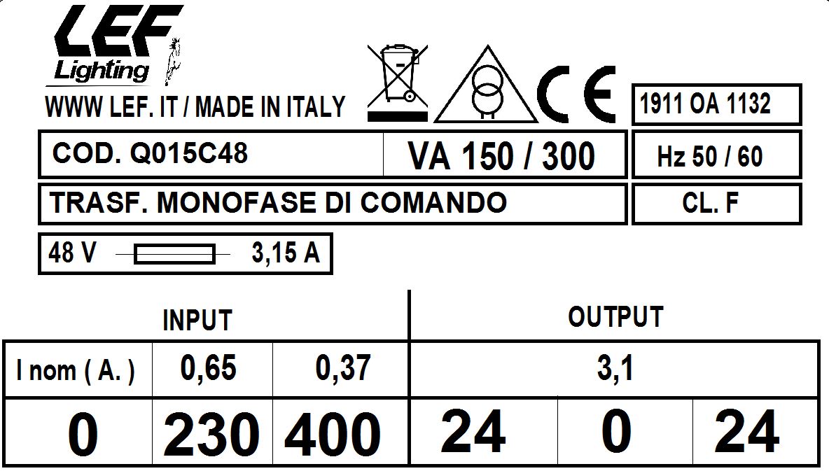 LEF LIGHTING SRL - LEFQ015C48 T.M. 150VA 230.400V / 24.0.24V - Q015C48
