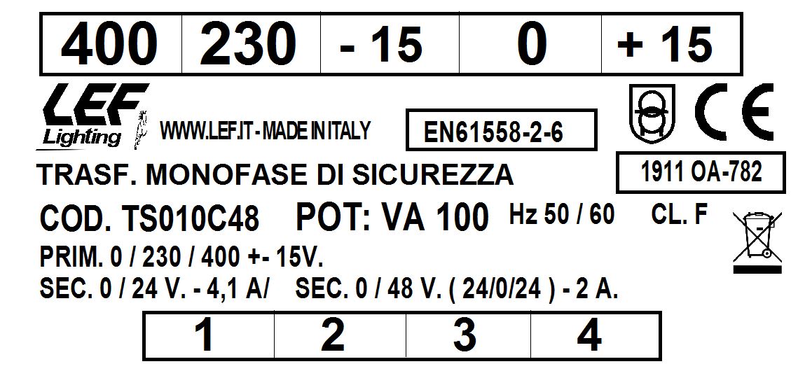 LEF LIGHTING SRL - LEFTS010C48 T.M. 100VA 230.400V / 24 48V