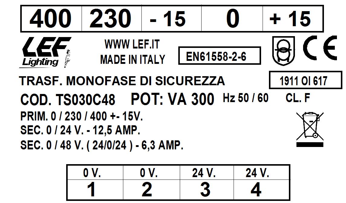 LEF LIGHTING SRL - LEFTS030C48 T.M. 300VA 230.400V / 24 48V - TS030C48