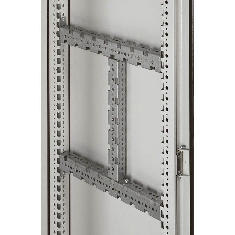 Traversa/montante universale 2200 mm multifunzione. Permettono la realizzazione di telai parziali all’interno degli armadi. Preposizionamento provvisorio prima del fissaggio definitivo mediante viti. Forature con passo 25mm predisposte per dadi in gabbia. In acciaio galvanizzato. Possono essere montanti sia in larghezza che in profondità o altezza.