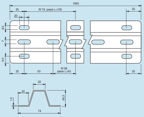 Larghezza della fessura - 22 mm