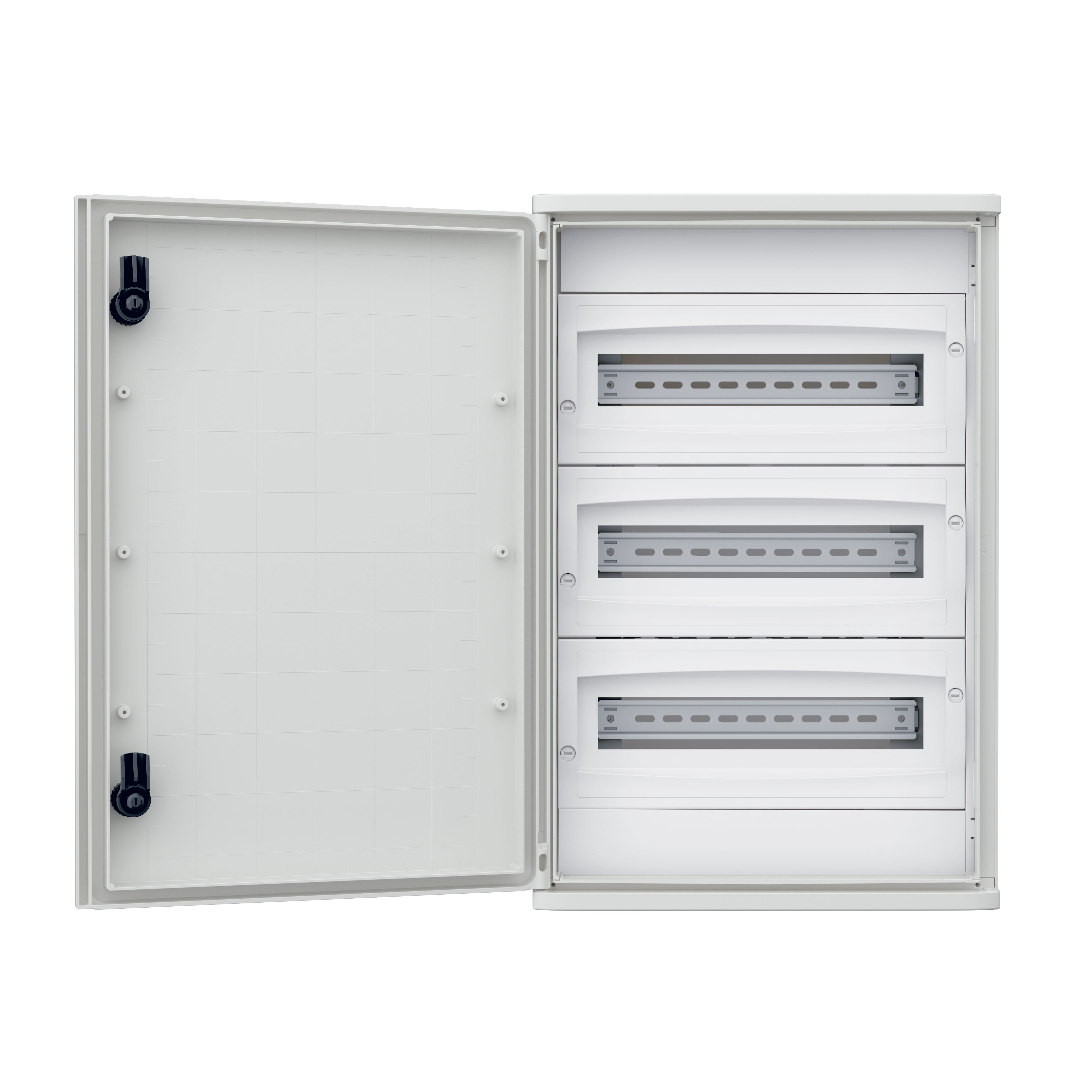 Telaio modulare in plastica per quadri 400 x 300 x 200 mm (3x10 moduli DIN). Kit completo fornito con montanti e pannelli finestrati. Fornito con 1 otturatore. Per quadri Atlantic-E, Atlantic inox e Marina