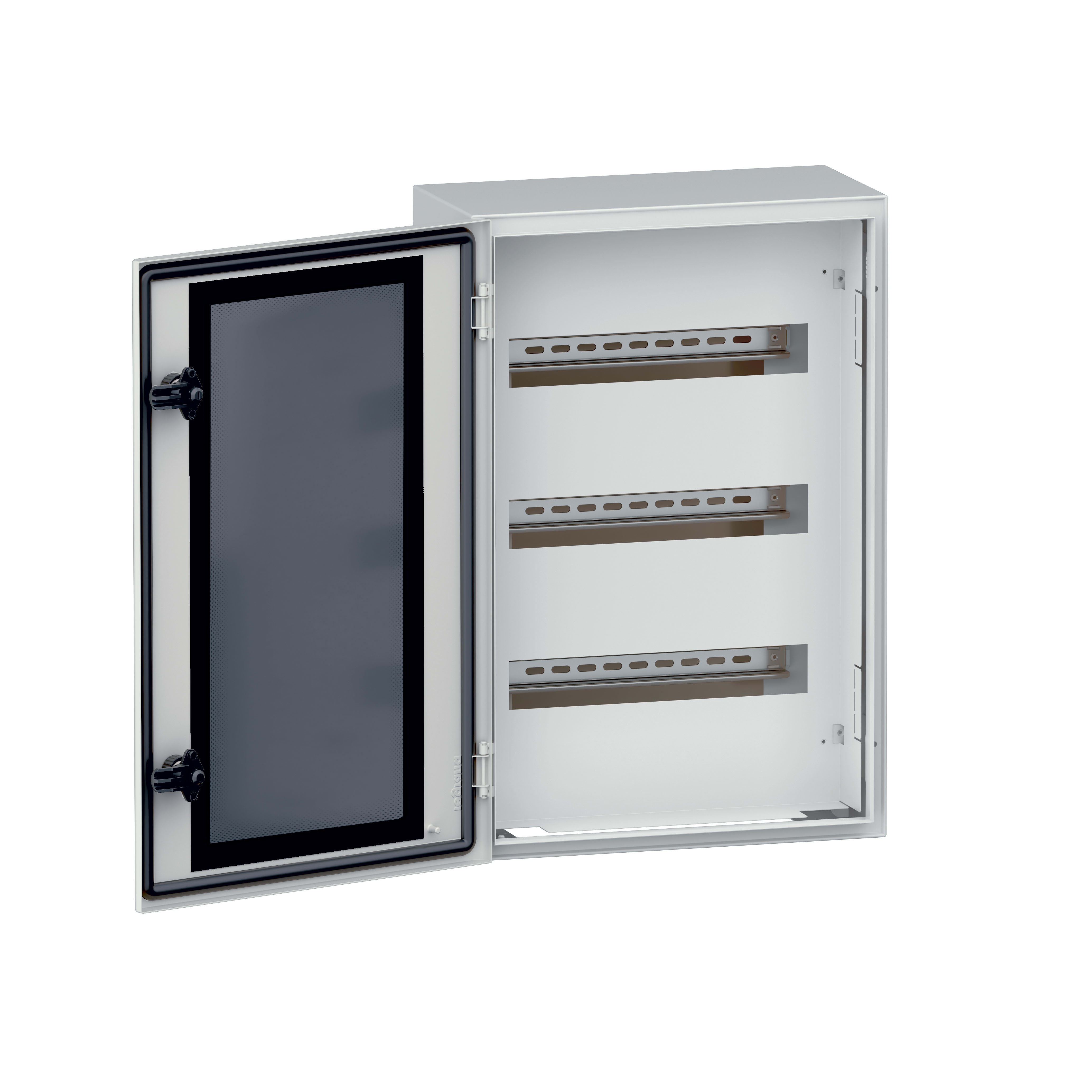 Telaio modulare in metallo per quadri 800 x 600 x 300 mm (4x27 moduli DIN). Kit completo fornito con montanti e pannelli finestrati. Fornito con 2 otturatori Per quadri Atlantic-E, Atlantic inox e Marina